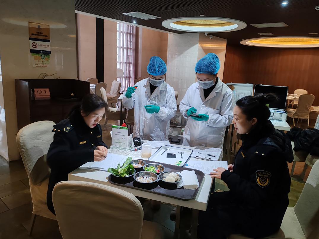 期间,派驻6人的食品安全保障工作组,配备多功能食品安全快检车1辆,综合发挥食品快检筛查、法定程序检验作用,针对会议供餐单位餐谱所需的蔬菜、水产品、米面油等食材,逐批次对农药残留、兽药残留、非法添加剂等项目实施检验,从源头上把控食品安全风险。
